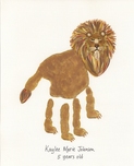 A wonderful handprint of a 5 year old turned into a realistic painting of a lion (See the whimsical version below.).